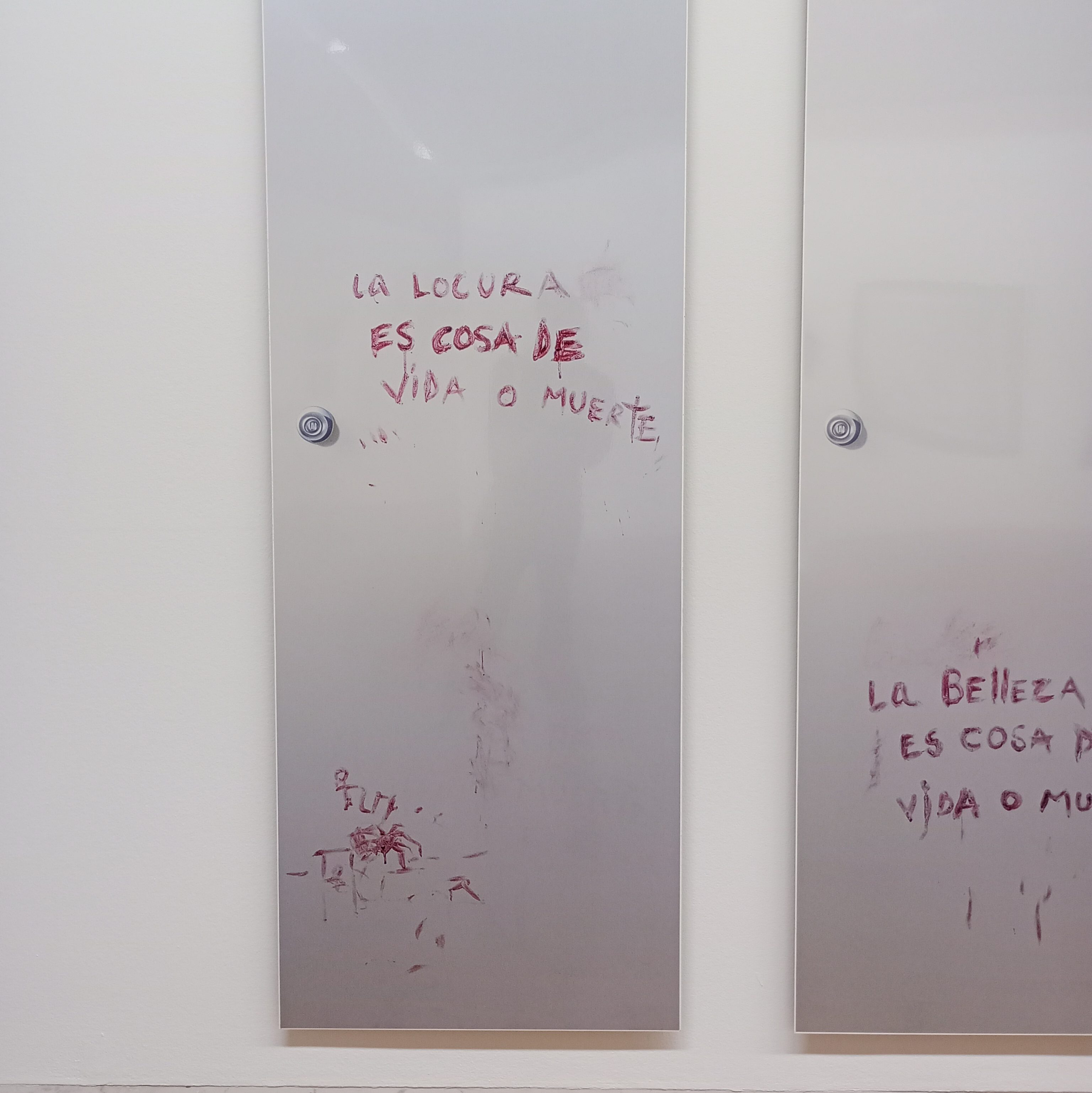 Esta exposición resulta absorbente: en cuanto desciendes por las escaleras y comienza el recorrido, un nudo se instala en el estómago. Es una muestra dura, que aborda temas dolorosos y cotidianos, removiendo inevitablemente al espectador. Sin embargo, lo hace desde la ironía, la sutileza y una estética delicada que roza la poesía visual.