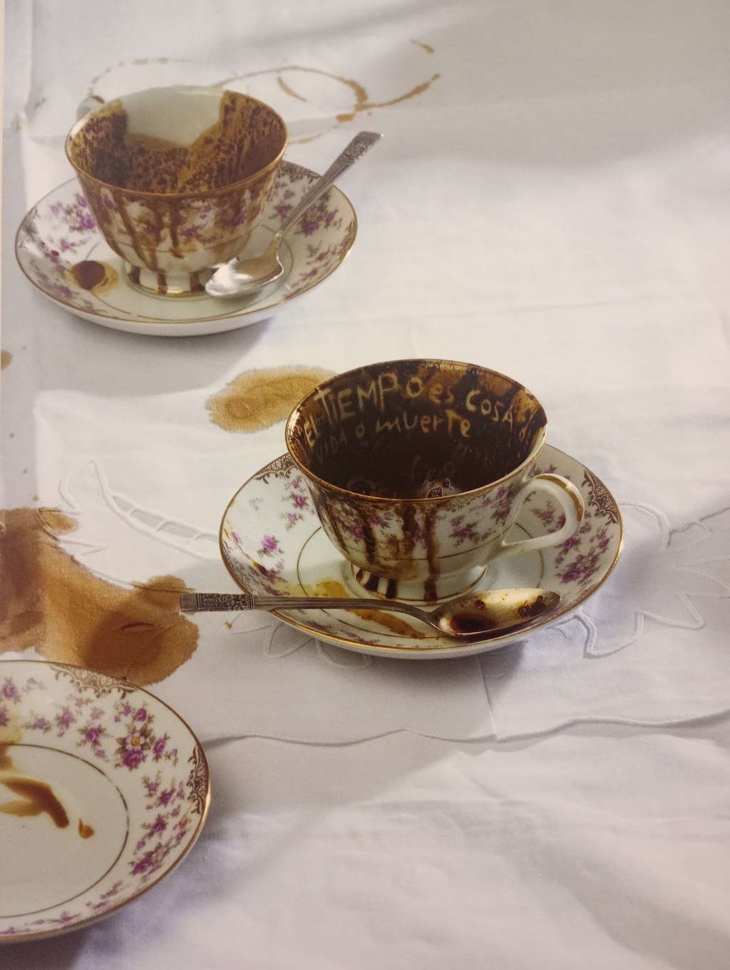 La muestra aborda también el feminicidio, la violencia escolar —en alusión a las masacres cometidas en institutos de EE. UU.—, los tabúes que pesan sobre la mujer (como la menstruación, entendida culturalmente como enfermedad o suciedad) y, de forma reiterada, la muerte. En su investigación sobre este tema en el arte contemporáneo, Monge descubrió que apenas había sido tratado. Inspirada por una frase de Clarice Lispector —“apagó la llama del día como un último suspiro”—, creó una serie de polaroids que traducen esa metáfora en imágenes.